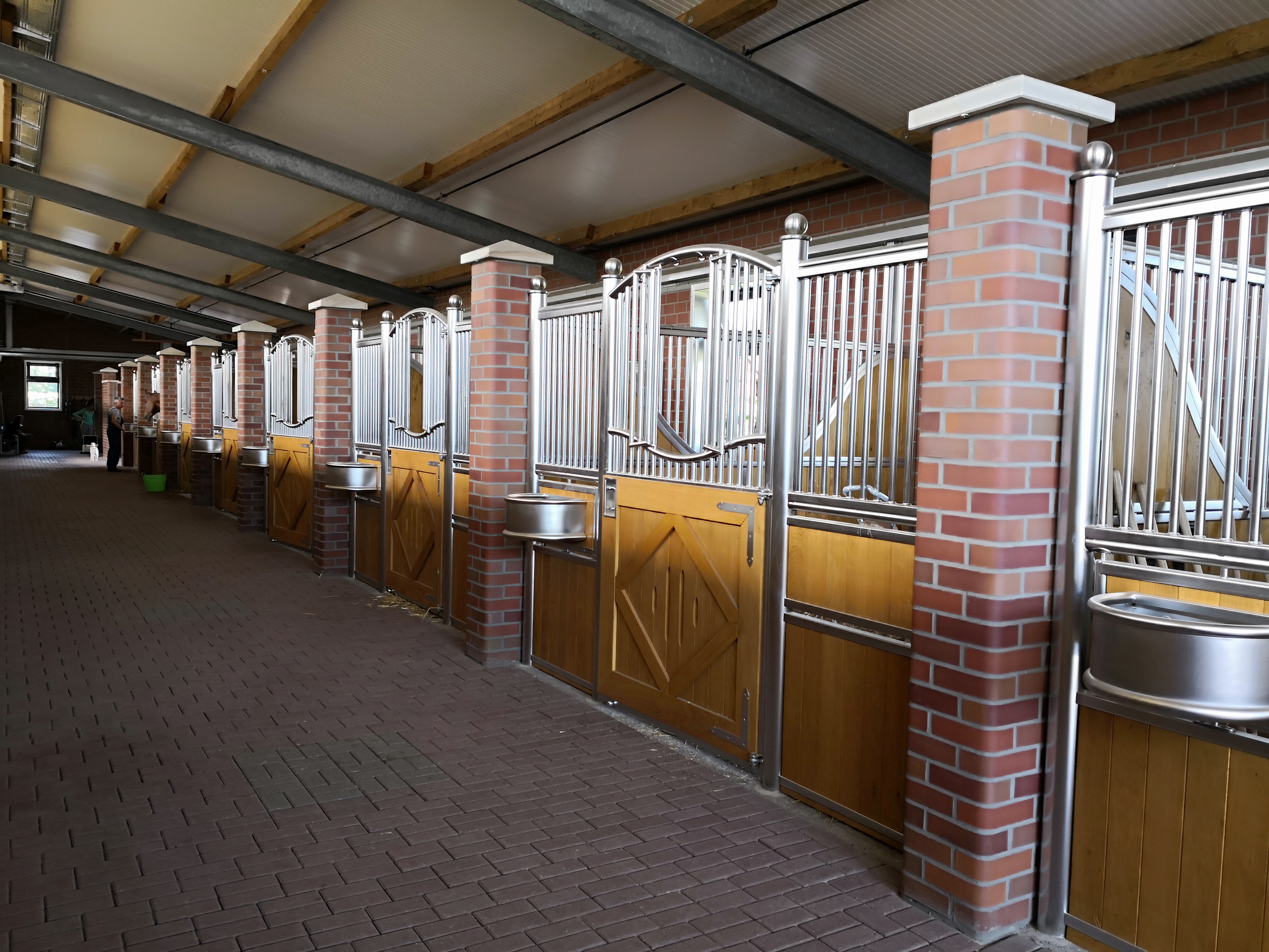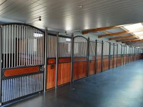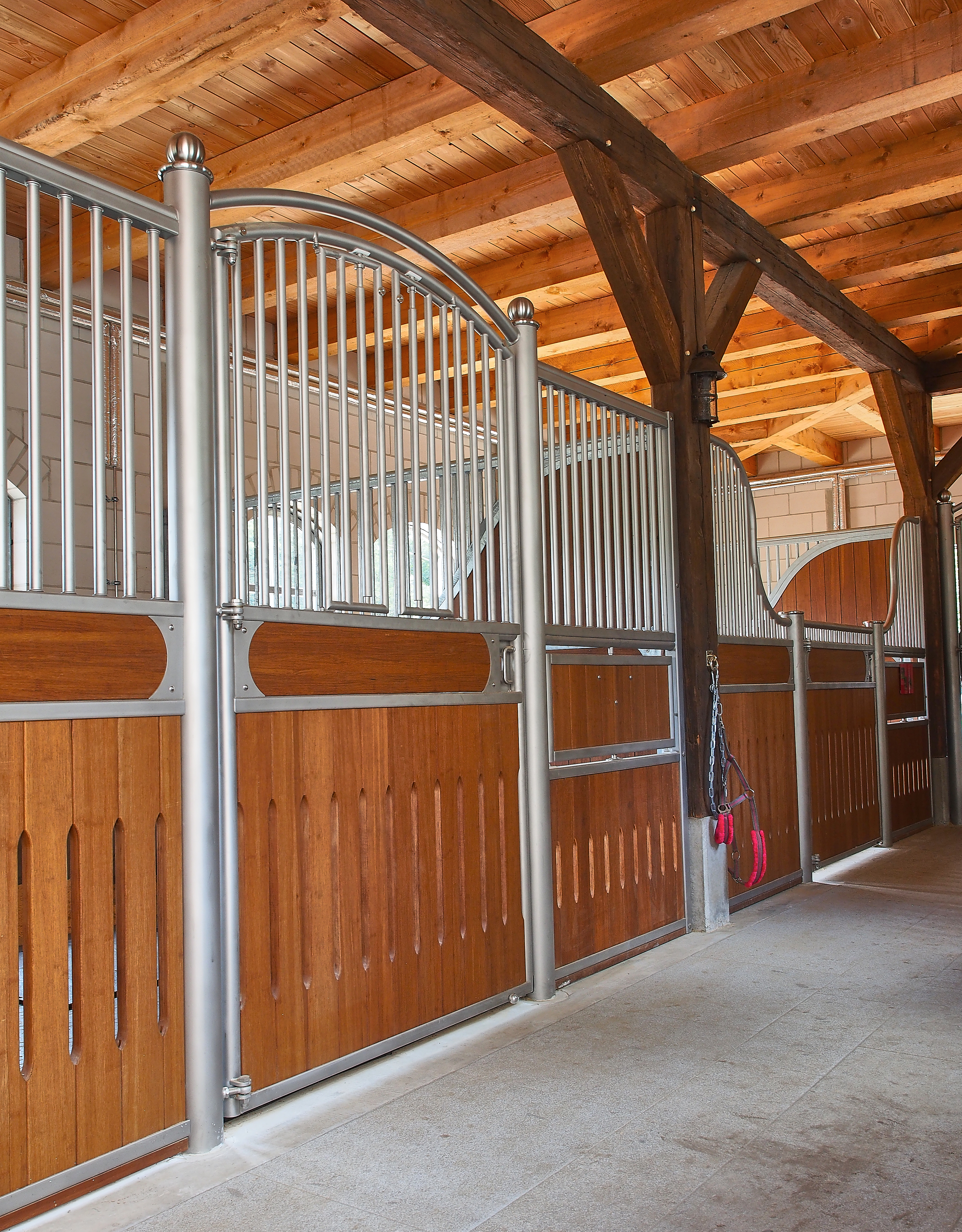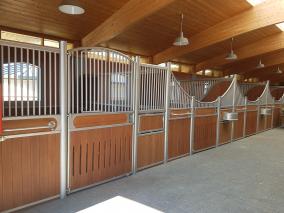 - Waagerechte Querbohle im oberen Bereich mit integrierter Kippbohle zur Befüllung des Futtertroges