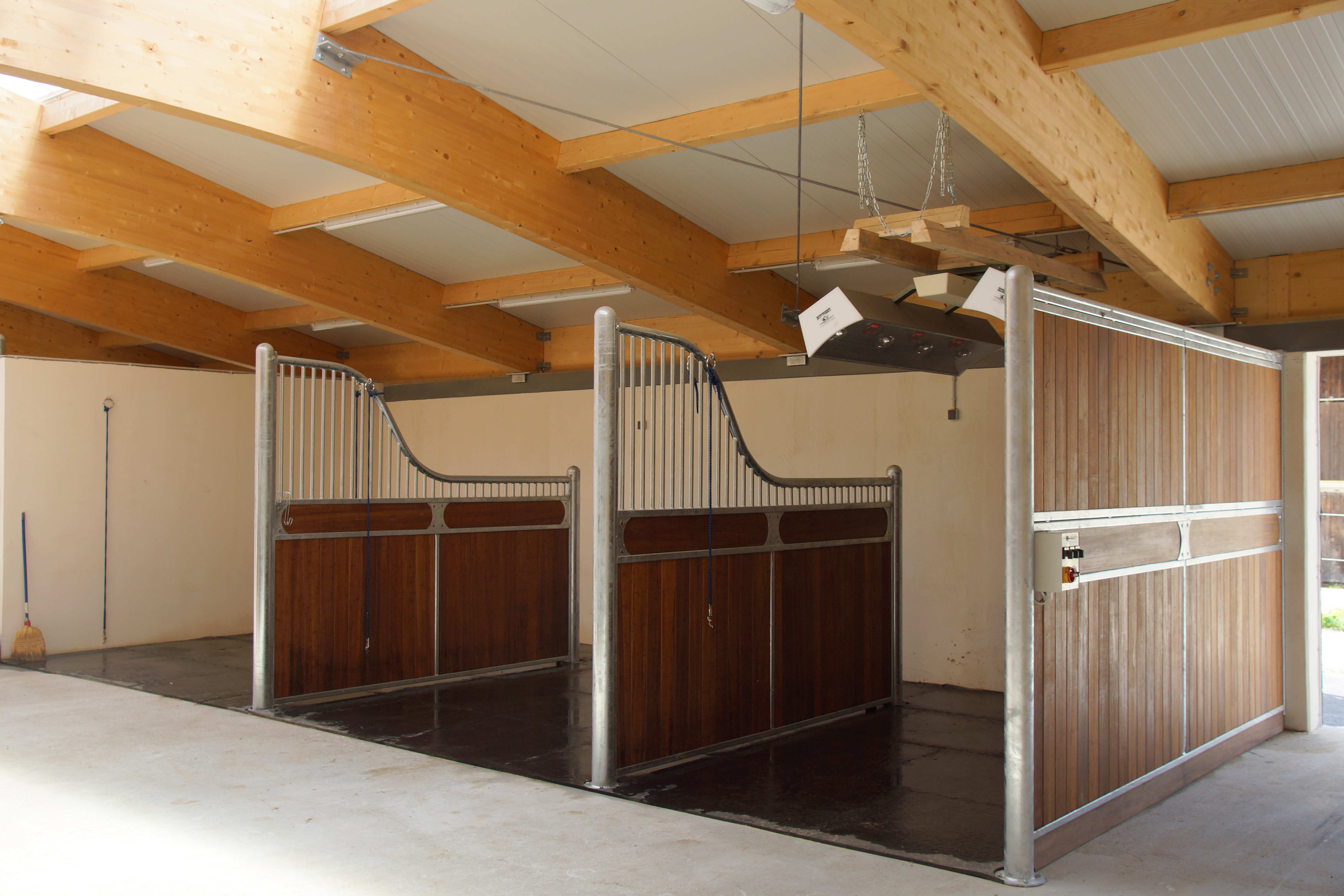 Gerne bieten wir Ihnen auf Anfrage und in Zusammenarbeit mit marktführenden Herstellern auch Führanlagen, Solarien, Sattelkammern, Gummi-Estrich, automatische Fütterungssysteme, Beuleuchtungen und weitere Ausstattungen an.